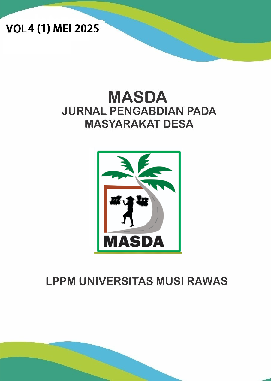 Ayub, A., Mardoni, A., Murahman, M., Juliman, J., & Jaya, A. 2024. Pemberdayaan masyarakat melalui tata kelola BUMDes di Desa Air Satan, Muara Beliti. Jurnal Masda, 3(1),9–16
